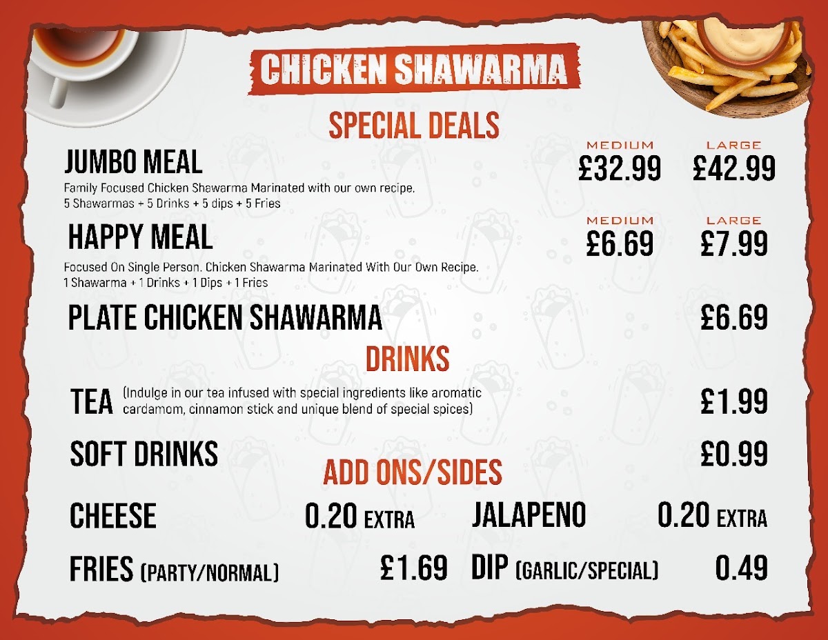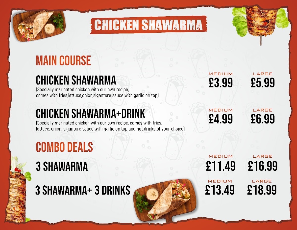 Located in Birmingham, THE SHAWARMA SHOP offers a deliciously authentic taste of Middle Eastern street food, focusing on juicy, meat-packed shawarma wraps that stand out for their rich flavors and generous portions. Starting from just £3.99, their shawarmas are thoughtfully crafted, toasted to perfection, and filled with fresh salads and succulent meat, creating a perfect balance of textures and taste. The value pack options, like 3 shawarmas for £11.49, make it ideal for sharing or multiple meals.
